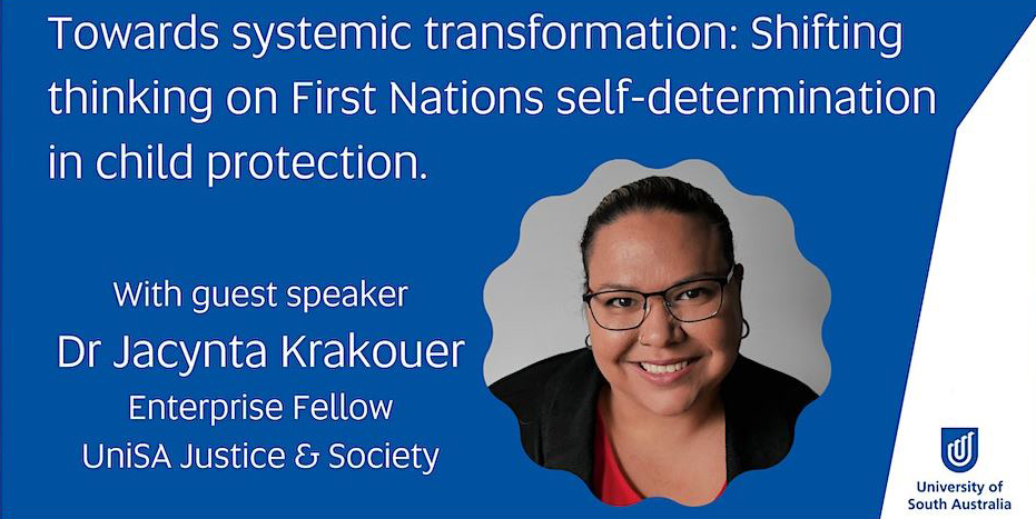 Dr Jacynta Krakouer's presentation 'Towards systemic transformation: Shifting thinking on First Nations self-determination on child protection', seeks to shift thinking on what First Nations self-determination can, and should look like in child protection in out of home care by interrogating the application of First Nations self-determination in these contexts.